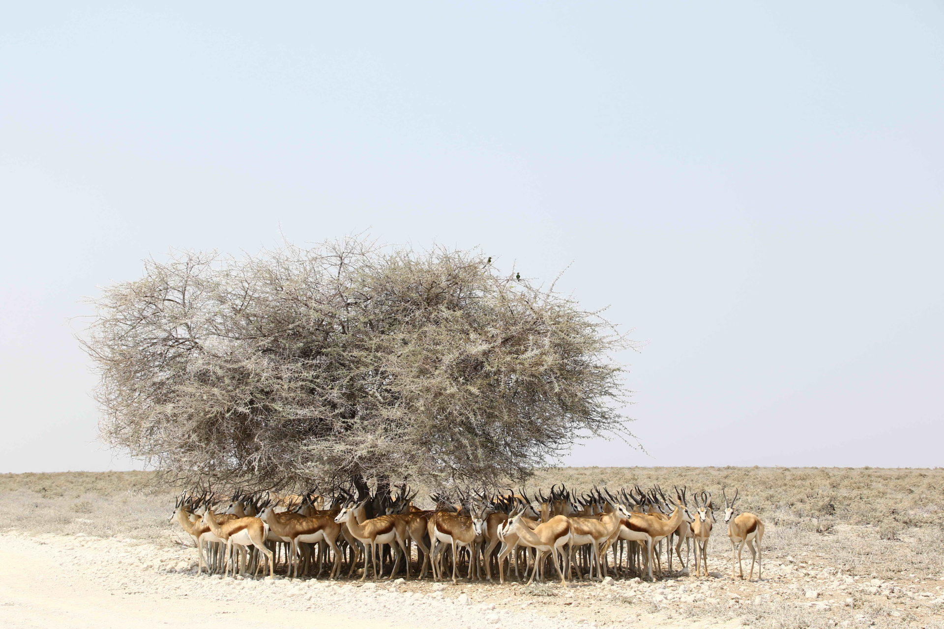 A herd of springboks rest in the shade of a tree during the height of the dry season in Etosha National Park (Photo credit: J. Mendelsohn).